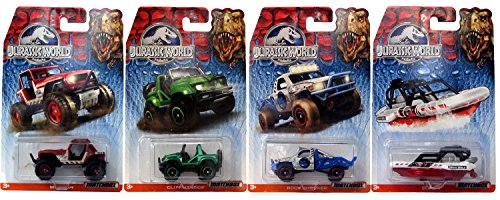 -. Feature : Celebrate the fourth installment in the Jurassic Park film series with a 4-pack of 1:64-scale vehicles / Features authentic details and decors inspired by the film series / Combines two of boys' favorite things: Matchbox and dinosaurs / Vehicles include: MBX 4x4 Jeep; Cliff Hanger; Rock Shocker and Sea Spy Boat