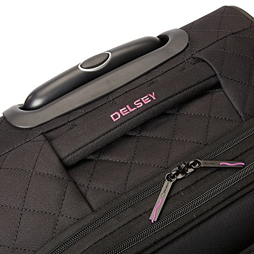 -. Brand : DELSEY Paris -. Department : unisex-adult -. Feature : Fits in the overhead of most domestic airlines / Stylish quilted exterior with contrasting stitching and a colorful internal lining / Roomy main compartment with tie down straps to secure clothing and 2 shoe pockets Zippered mesh pocket and wet pocket for toiletries in the lid / Two front exterior pockets for last minute items like electronics or tickets / Features four double spinner wheels which keep ZERO weight on your arm while travelling -. Label : Delsey -. Manufacturer : Delsey -. PackageQuantity : 1 -. ProductGroup : Apparel -. ProductTypeName : LAGE -. Publisher : Delsey -. Studio : Delsey -. Title : Delsey Quilted 21" Carry On Expandable Spinner - EXCLUSIVE