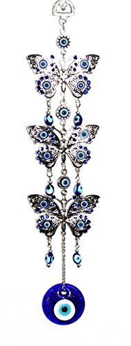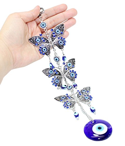 Turkish Blue Evil Eye (Nazar) 3 Butterflies Amulet Wall Hanging Home Decor Protection Blessing Housewarming Birthday Gift US Seller