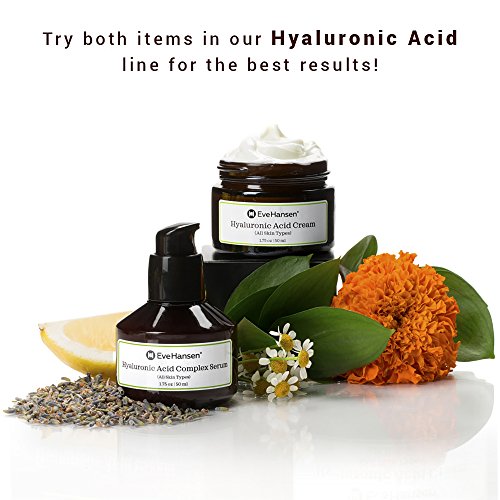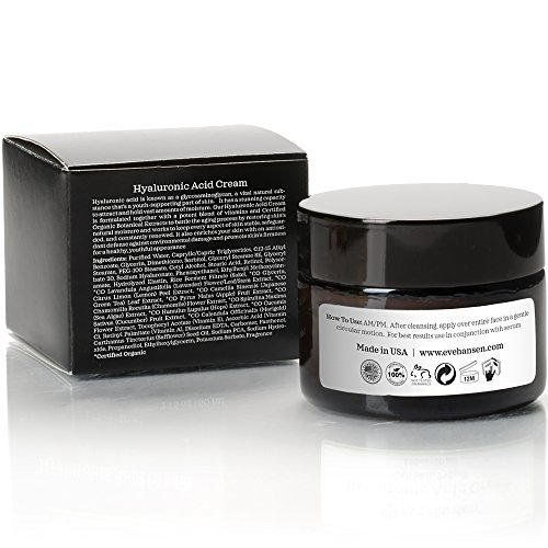 Studio : Eve Hansen Publisher : Eve Hansen Binding : Misc. Product Description Hyaluronic acid is known as a glycosaminoglycan, a vital natural substance that's a youth-supporting part of skin. Our hyaluronic face cream or hyaluronic lotion has a stunning capacity to attract and hold vast amounts of moisture content. Our Hyaluronic Acid hydrating moisturizer is formulated together with a potent blend of vitamins and Certified Organic Botanical Extracts to battle the aging process by acting as a natural moisture and collagen production booster, and works to keep every aspect of skin stable, safeguarded, and constantly renewed. It also enriches your skin with an antioxidant defense against environmental damage and promotes skin's firmness for a healthy, youthful appearance. Hyaluronic acid collagen production stimulation is an important benefit as it leads to a reduction in the appearance of wrinkles. This hyaluronic acid organic cream will keep your skin moist and renewed, and will lead to phenomenal results with daily and regular use - will become a staple in your skincare routine After cleansing toning comes application of serums. Anti aging serums that are good to use to target specific skincare concerns include hyaluronic serum, hyaluronic retinol, and vitamin c serum. Using a hyaluronic acid serum with this Vegan Hyaluronic acid facial Cream will pair together for intensive hydration. The best anti aging face cream benefits will appear when used in a complete skin care routine daily. Safe to use hyaluronic concentrate and hyaluronic gel on face and eye areas! Lightweight antioxidant infused hyaluronic powder cream with top grade ingredients. This hyaluronic eye and face cream is what your skin has been asking for. With a high concentrate of Hyalauronic acid from nature's hands, this wonder cream will provide hydration help fight free radical damage which leads to premature ageing. Maximize protection as this product makes the best topical mosturizer for turning ordinary damaged skin- into rejuvenated and restored 0