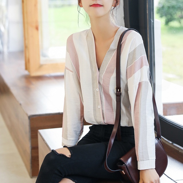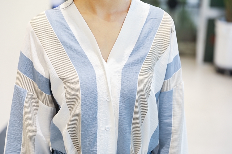 デイリーカジュアルコーデに欠かせない爽やかなストライプ柄を全面にあしらったブラウスです♪