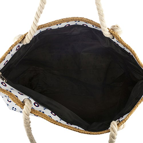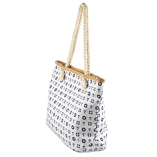 Lux Accessories Womens 21' x 12' Large Canvas Zip Up Anchor and Lifesaver Beach Bag
