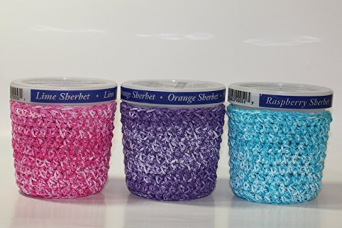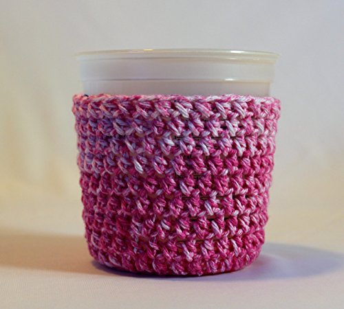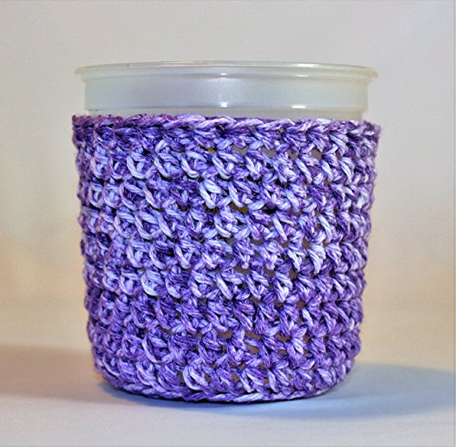Product Description Set of 3 handmade crochet ice cream pint cozy's. These ice cream pint cozy's are made with a cotton poly blend yarn so the colors will stay brighter longer. 85% cotton, 15% polyester. Has the look and feel of cotton. Keep your hands nice and warm while you are enjoying your favorite frozen treat! Machine was cold, tumble dry low. 0