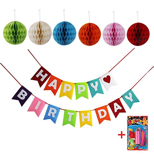 Way-Seven Happy Birthday Party Decorations with Gift of Balloons & Air Inflator Set