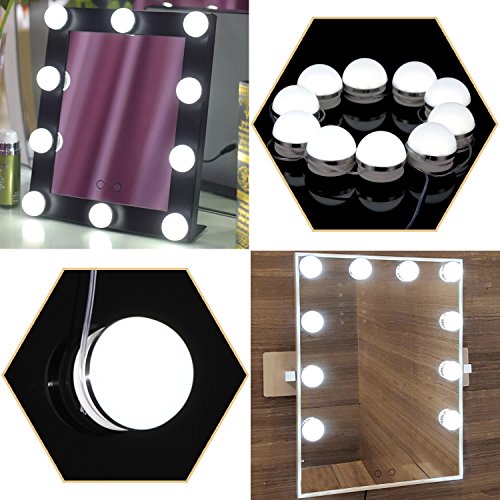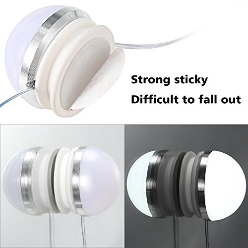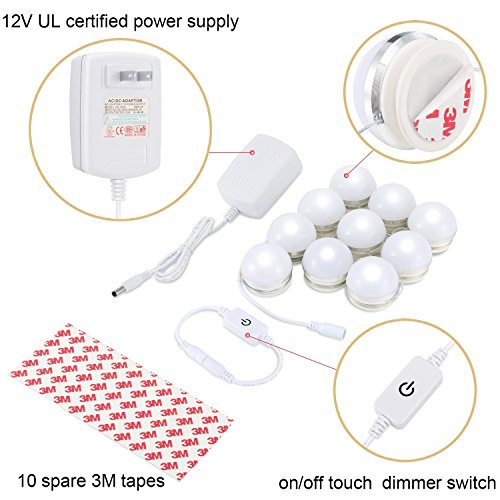 - 【EASY INSTALLATION, ATTACH, PLUG & PLAY】 Simply attach bulbs onto a mirror, mirror frame or wall with the supplied 3M tapes in a few minutes, and plug and play with the included 12V power supply.