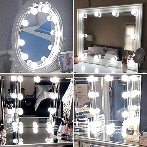 - 【HOLLYWOOD VANITY DESIGN TO WEAR YOUR PERFECT MAKEUP】 No more worry of insufficient light or color difference when wearing your makeup. 10 Hollywood style vanity light bulbs produce the ideal brightness through frosted globes to illuminate your entire face naturally and beautifully. No matter how dim the environment, you can wear makeup at any time. Clear, soft and no dazzling light, Anti-UV Technology, NOT hurting your eyes, NOT cause skin aging or wrinkling so NO PROMBLEM to make up for long.