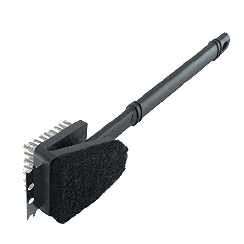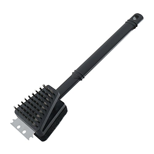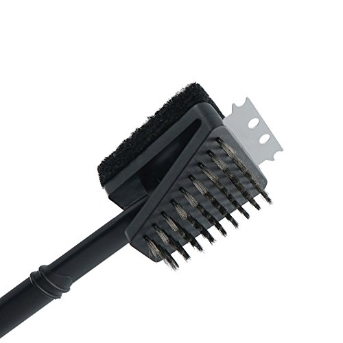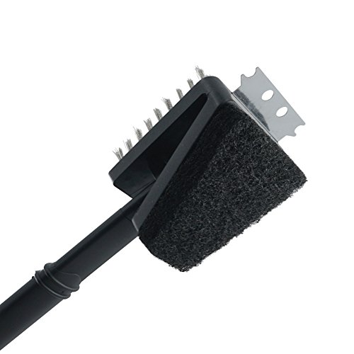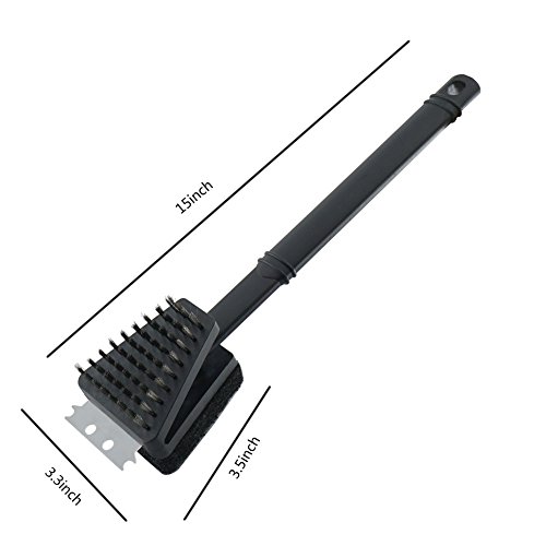 ChasBete Barbecue Grill Cleaning Brush With Steel Bristles Scrubbing Pad and Steel Scraper 15 inch Handle BBQ Brush