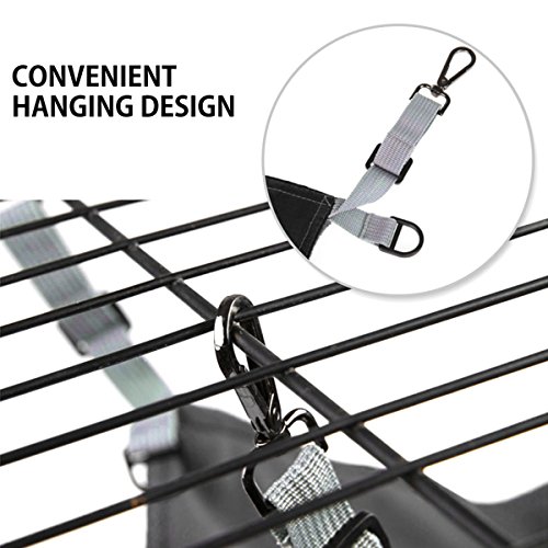 Hang Where Convenient in Seconds: just attach it to crate or cage corners with metal hooks, or hang under most chairs using the adjustable straps included, the four anti slip straps hold everything together in safety, great for saving space as well