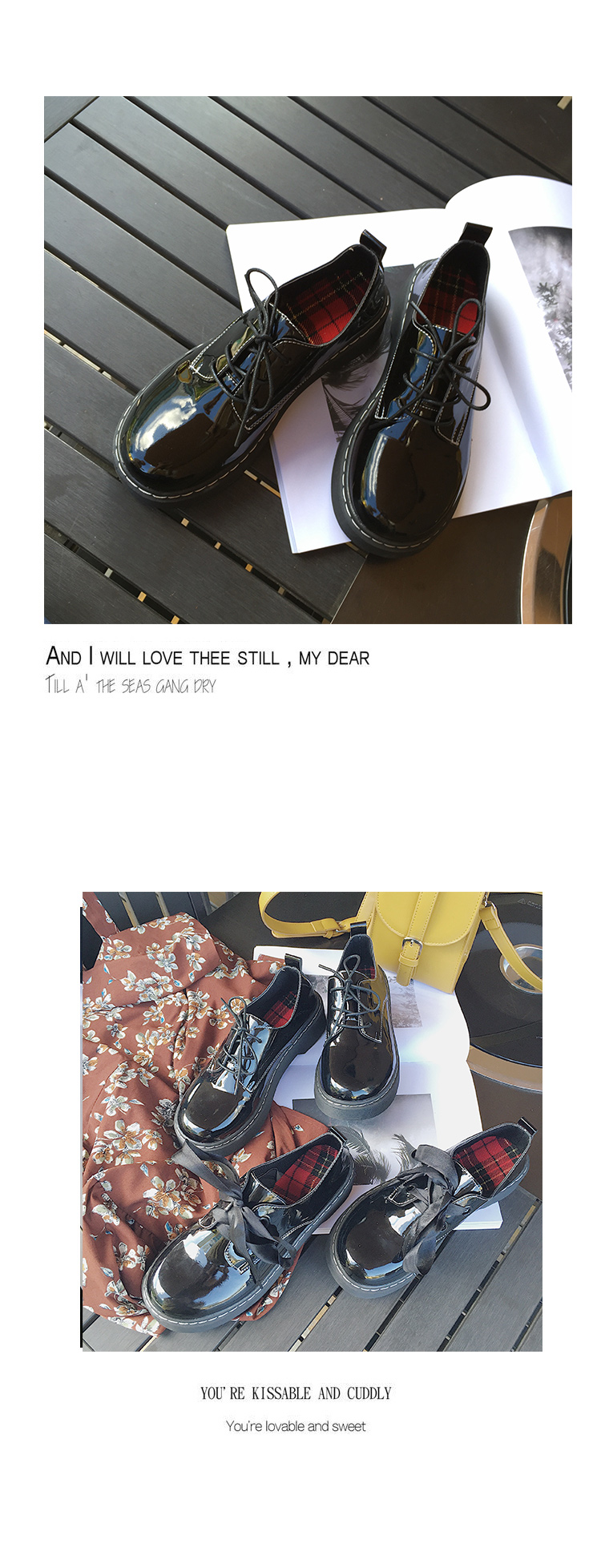 漆皮搭配上元气满满的少女绸缎带