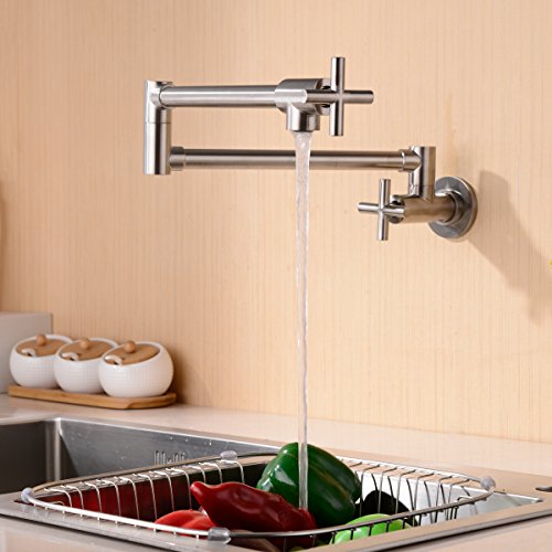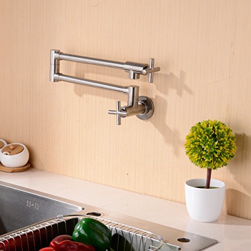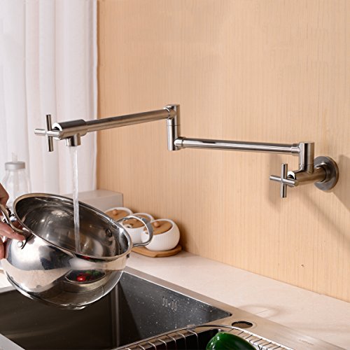 HANEBATH Brass Wall Mount Pot Filler Kitchen Sink Faucet , Brushed Nickel