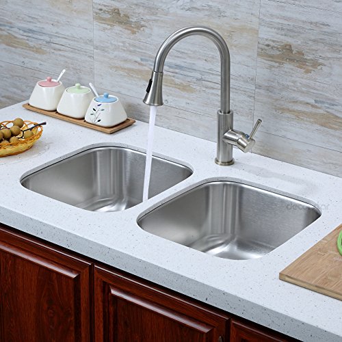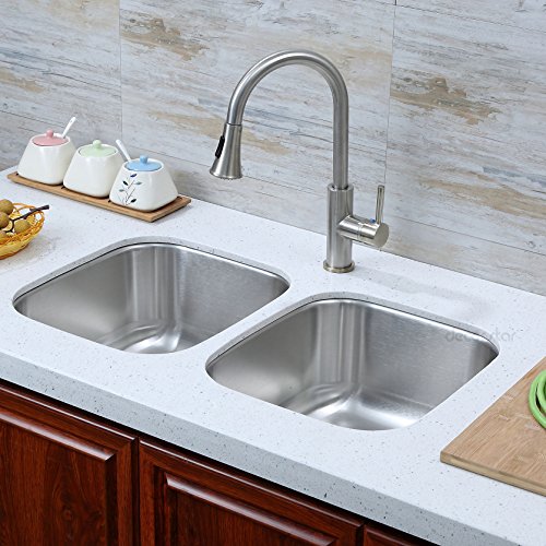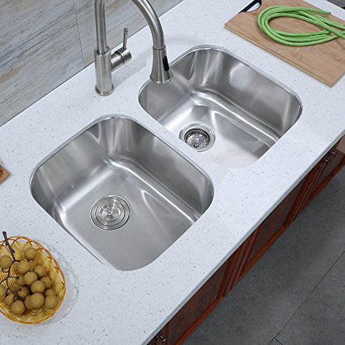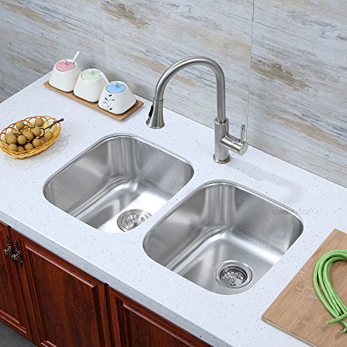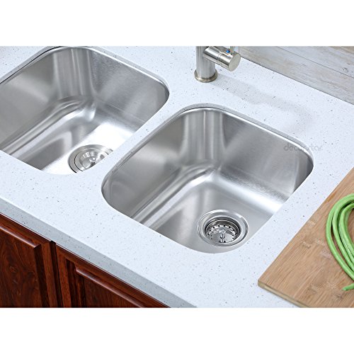 Decor Star P-009 31 1/4 Inch Undermount 50/50 Equal Double Bowl 18 Gauge Stainless Steel Kitchen Sink cUPC