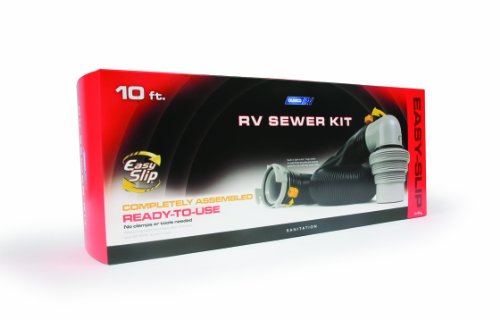 Camco RV Easy Slip Ready To Use Sewer Kit comes completely assembled with everything you'll need for a quick, reliable sewer hook up. Non-restrictive fittings for free flow and faster dumping. Includes 10' HTS sewer hose, Easy Slip bayonet straight hose adapter and Easy Slip sewer elbow with 4-in-1 adapter. Patented.