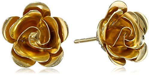 -. Title : 14k Yellow Gold Italian 3D Flower Stud Earrings