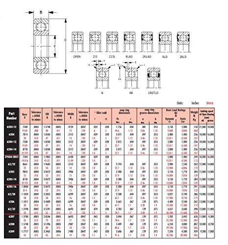 Peer Bearing 9502H-C3 6200 Series Radial Bearings, C3 Fit, 15.875 mm ID, 34.93 mm OD, 11 mm Width, Double Seal