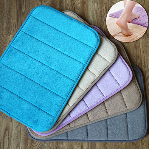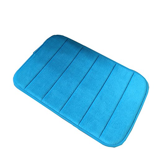 CUGBO Bath Rugs Anti-slip Super Absorbent Bath Mats Memory Foam Coral Velvet Rugs 16''×24''(Blue)