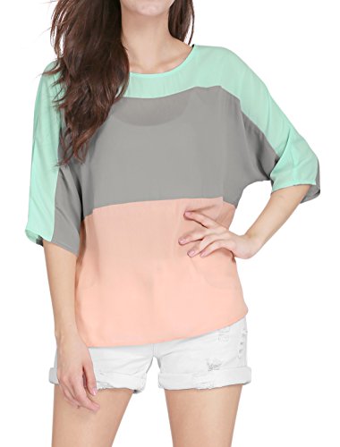 -. Title : Allegra K チュニック ブラウス シフォン 切り替え ドルマンスリーブ ゆったり レディース