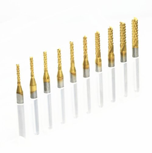 SHINA 10 Titanium Coat Carbide 1.5mm-3.175mm End Mill Engraving Bits CNC Rotary Burrs Set (ST1.5-3.175mm-10Ti)