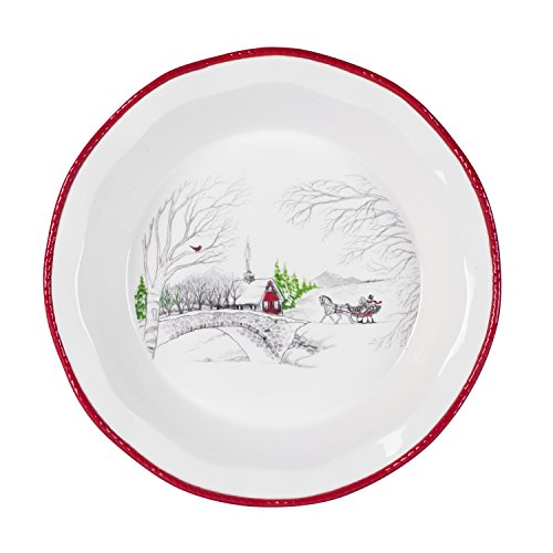 Fitz and Floyd Vintage Holiday Collection Pie Dish, White