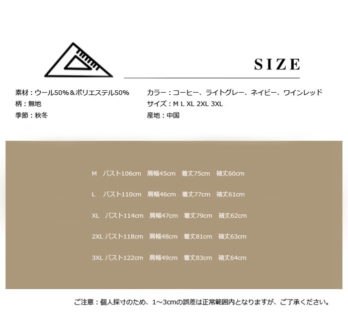 チェスターコート メンズ 大きいサイズ ウールコート メンズ トレンチコート ロング丈 カジュアル ビジネス 紳士 通勤 着痩せ効果 2018秋冬新作 チェスターコート 大きいサイズ メンズ アウター ウールコート商品詳細素材:ウール50%&ポリエステル50%柄:無地季節:秋冬カラー:コーヒー、ライトグレー、ネイビー、ワインレッドサイズ:M L XL 2XL 3XL産地:中国サイズ参照表M バスト106cm 肩幅45cm 着丈75cm 袖丈60cmL バスト110cm 肩幅46cm 着丈77cm 袖丈61cmXL バスト114cm 肩幅47cm 着丈79cm 袖丈62cm2XL バスト118cm 肩幅48cm 着丈81cm 袖丈63cm3XL バスト122cm 肩幅49cm 着丈83cm 袖丈64cmご注意:個人採寸のため、1~3cmの誤差は正常範囲内となりますが、ご了承ください。チェスターコート メンズ 大きいサイズ ウールコート メンズ トレンチコート ロング丈 カジュアル ビジネス 紳士 通勤 着痩せ効果 2018秋冬新作 チェスターコート 大きいサイズ メンズ アウター ウールコート