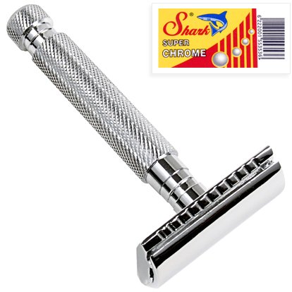 • Classic 3 Piece design for accurate blade alignment! 5 Shark Super Chome Razor blades included