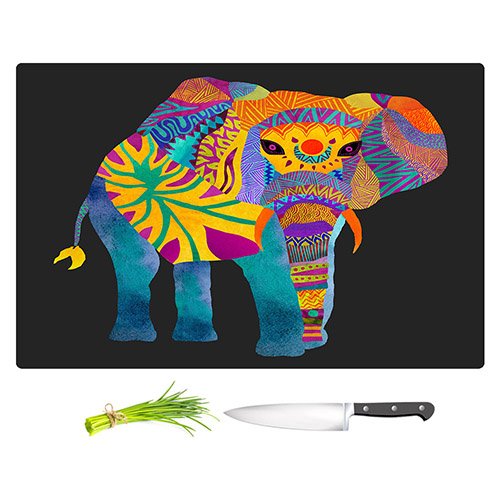 DiaNoche Designs CB-PomGraphicWhimsicalElephantII2 Pom Graphic Design-Whimsical Elephant II Unique Kitchen Slicing Dicing Bar Artistic Decorative Cutting Boards from, Large 15" x 11"