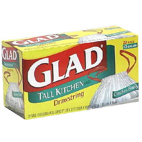 Glad Tall Kitchen Bags with Drawstring, 13 Gallon 22 bags