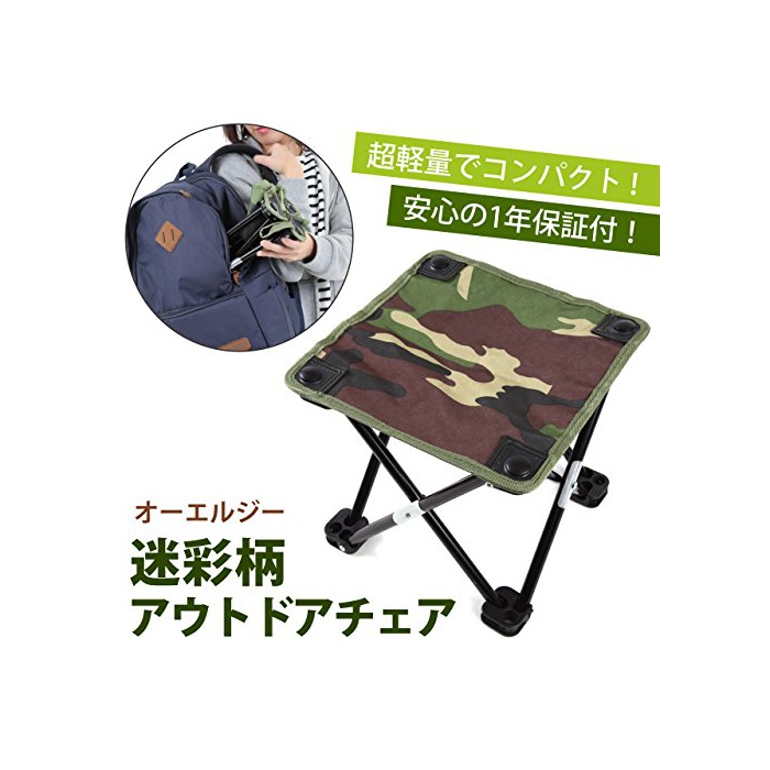 원본상품명: 【オエルジ】 アウトドアチェア 迷彩 折りたたみ椅子 超量559g 耐荷重100kg 持ち運びラクラク 1年保 用袋付き