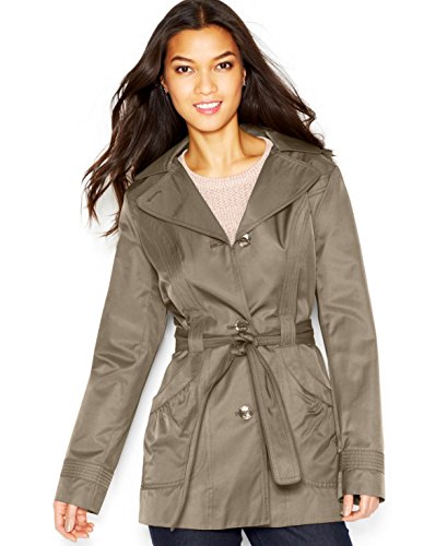 Update your look with unique style in Laundry by Design's modern trench coat, featuring a removable hood chic princess seam detail. Notched collar with removable button-off hood Single-breasted front button closures Long sleeves with top-stitched detail at cuffs Slit pockets at hips Contrast-trim self-tie belt included; belt loops Princess seams at front merge into belt loops and pocket edges Lined Lightweight Hits at thigh; approx. 34 inches long Cotton/polyester; lining: polyester Machine washable Imported