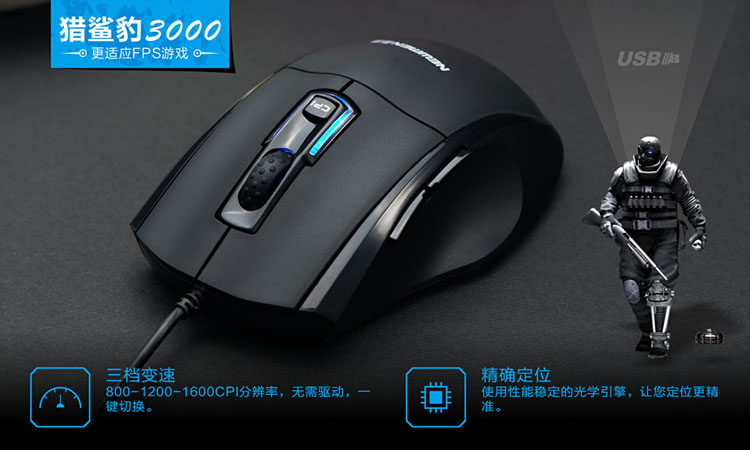 MS-198OU猎鲨豹3000有线鼠标游戏鼠标USB台式电脑