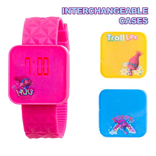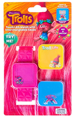 These cute and eye-catching watches hide a stealth power. Your fashion wristband quietly clasps your wrist looking all sweet and up-to-date, then hey! A light touch reveals an illuminated digital time display! Illuminate any time of day or night with clever touch-activated timekeeping. And it looks good enough to wear just to set off your outfit. BONUS: Complementary Trolls adhesive patch includedFeature