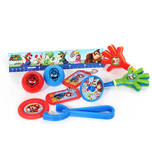 -. Feature : Fun favor pack featuring ping pongs, tops, balls, key chains, disc shooters, and rulers P.R.Inted with images of Mario and the mushroom Kingdom gang / Made of cardstock and plastic / Perfect to power up your goodie bags to delight your guests / Package includes a total of 48 toy favors