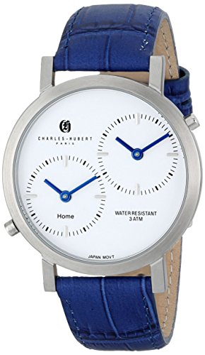 Features. Round dress watch with black croco-leather band gray-and-black dial with dual time display.. Japanese-quartz movement with analog display.. Protective mineral crystal dial window.. Buckle closure.. Water resistant to 99 feet 30 M withstands rain and splashes of water but not showering or submersion.. Item Shape - Round.. Dial window material type - Mineral.. Display Type - Analog.. Clasp - Buckle.. Case Material - Stainless steel.. Band Material - Calfskin.. Band length - Mens Standard.. Band Color - Black.. Dial color - Black.Feature