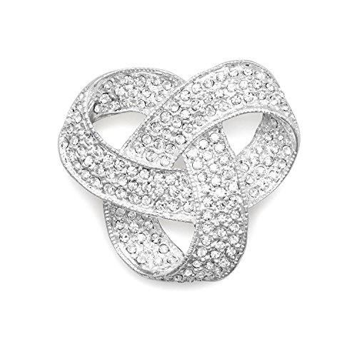 -. Title : Love Knot Pin Brooch Swarovski Crystal Plated with Fine Silver