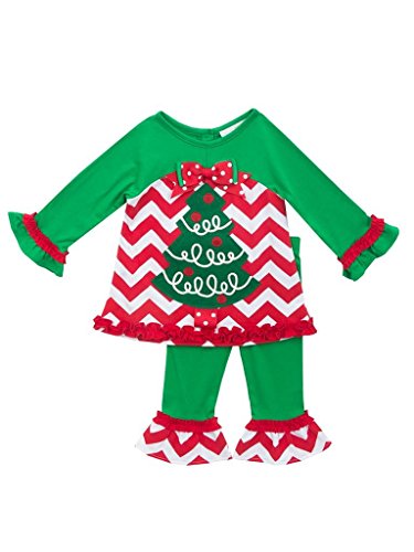 -. Feature : Rare Editions / Christmas Holiday Theme / Top and Leggings Set / Christmas Tree Applique / Green, Red and White Colors