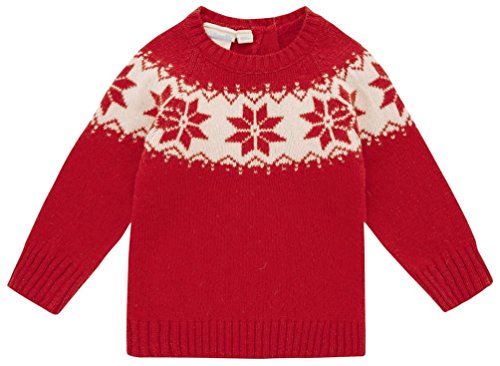 JoJo Maman Bebe Snowflake Jumper (Baby) - Red Bold and bright traditional Christmas jumper. Features: Machine Washable Lovely knitted jumper with cute snowflake pattern to chest and shoulders. Machine washable at 30 degrees