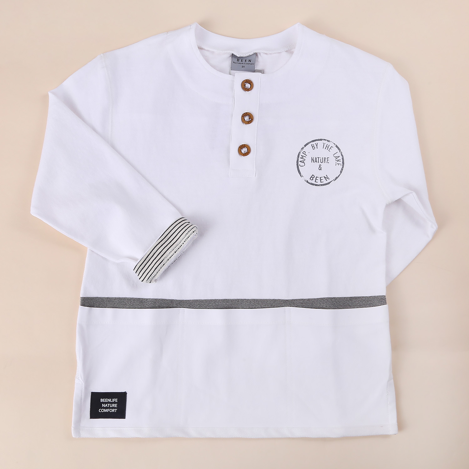 아이보리 컬러의 앞 오픈 포켓 티셔츠 아이템입니다.