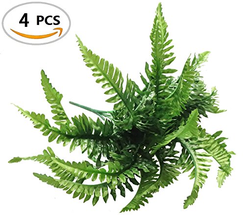 Fake Faux Artificial Boston Ferns Plants Greenery Bushes for Indoor Outside Home Garden Party Decor 4 Bunches 24 Leaves Per Bunch by ZXSWEET