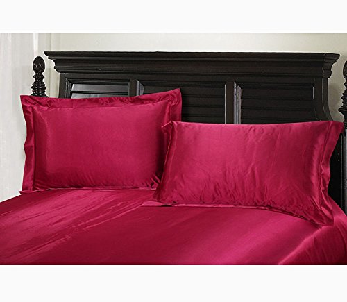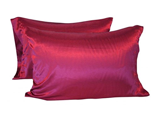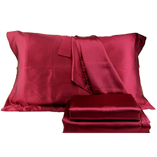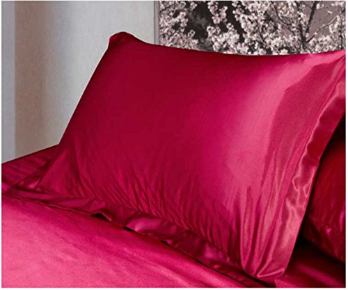 CHRISLZ 2pc Set of Silk Pillowcase, Standard 50x75CM Silky Soft & Wrinkle Free Pure Color Silk Red Pillowcase