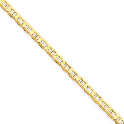 -. Feature : Polished 14k yellow gold design / 3mm in width / Closes with a secure lobster clasp / Solid link, concave anchor style / Includes our custom gift box