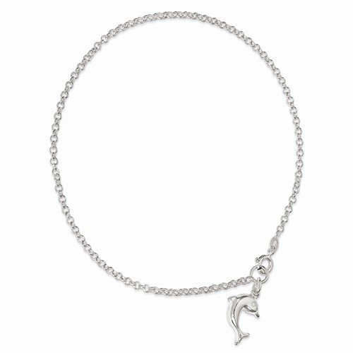 -. Title : 925 Sterling Silver 10inch Hollow Polished 3-Dimensional Dolphin Anklet Bracelet
