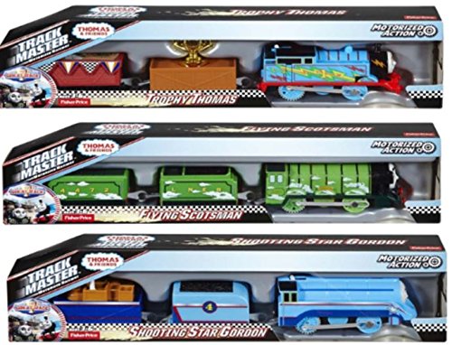 -. Binding : Toy -. Brand : Thomas & Friends -. EAN : 0719318978832 -. Feature : Economical 3-Pack! Thomas and Friends in this Special Collection! / This collection features new, streamlined designs, updated decorations and additional components / Redesigned TrackMaster engines feature enhanced speed and performance / Motorized train play is compatible with most TrackMaster track and playsets / Each engine requires 2 AAA batteries -. IsAdultProduct : 0 -. Label : Thomas The Train -. Manufacturer : Thomas The Train -. ProductGroup : Toy -. ProductTypeName : TOYS_AND_GAMES -. Publisher : Thomas The Train -. Studio : Thomas The Train -. Title : Thomas The Train and Friends Great Race Movie 3-Pack Motorized Engines: Trophy Thomas, Shooting Star Gordon, Flying Scotsman -. UPC : 719318978832
