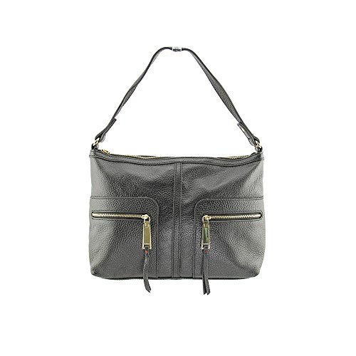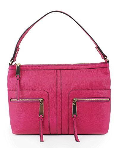 Top-zip closure. Polyester fabric lining. Shoulder strap. Exterior flaunts dual zip pockets at front with brand logo hardware at left side. Interior features zip-pocket with 2 slip pockets. Imported.