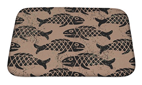 Gear New Grunge Pattern with Fish Bath Rug Mat No Slip Microfiber Memory Foam