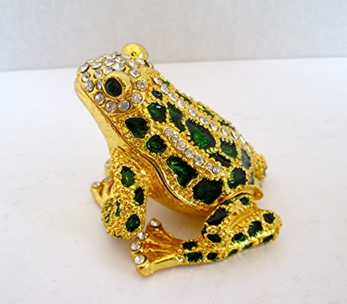 -. Feature : Beautiful frog trinket jewelry box. / Opens on a hinge and closes with secure, magnetic closure. / Come in a beautiful gift box. / 2 inches tall, 2 1/2 inches wide, and 2 1/2 inches long.