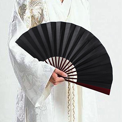 Metable Large Black Silk Folding Fan Chinese Style Men Bamboo Folded Fans Father's Day Gift Hand Held Props for Dancing Cosplay Home Office Wall DIY Decoration 13"(33cm)