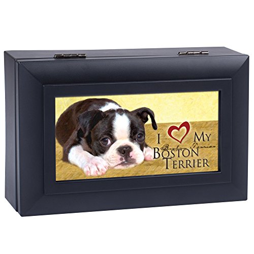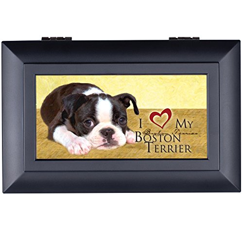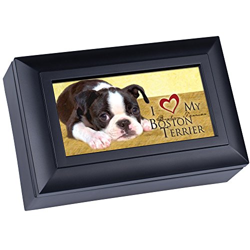 Love My Boston Terrier Cottage Garden Matte Black Finish Petite Jewelry Music Box - Plays Song Wonderful World
