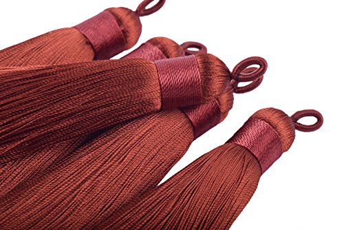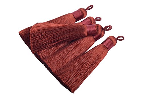 KONMAY 10pcs 3.4''(8.5cm) Handmade Imitation Silk Tassels with Hanging Loop for Jewelry Making (Coffee)