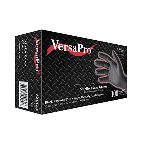 VersaPro T501SCS Nitrile Exam Gloves, Powder Free, Small, Black (Pack of 10)
