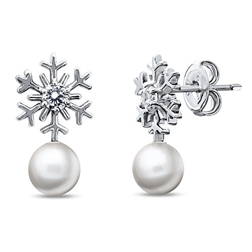-. Feature : METAL: rhodium plated .925 sterling silver, stamped 925, high polished finish, nickel free. / PREMIUM QUALITY STONE: Main Stone: imitation pearl, Side Stones: 0.33 carat round cut clear cubic zirconia (3mm) / STYLE: This 2-piece snowflake earrings and pendant necklace set lends a shimmering wintry glow and a touch of timeless elegance to your look. / GIFTING: Comes with FREE BERRICLE signature jewelry box and is ready for gifting