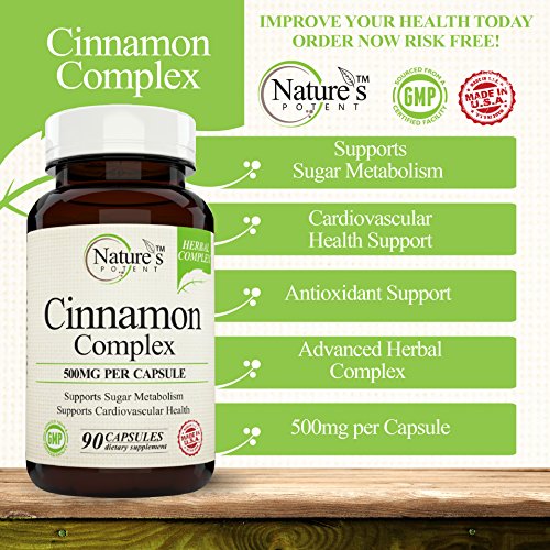 -. Feature : Supports Sugar Metabolism / Cardiovascular Health Support / Antioxidant Support / Pharmaceutical Grade - Nature's Potent Cinnamon Capsules - Made to Nature's Potent Guaranteed Purity Potency Standards / 100% Safe - All our products Made in USA in FDA & GMP Certified Facilities - Third Party Tested to Insure Premium Quality Products! 100% MONEY BACK GUARANTEE!